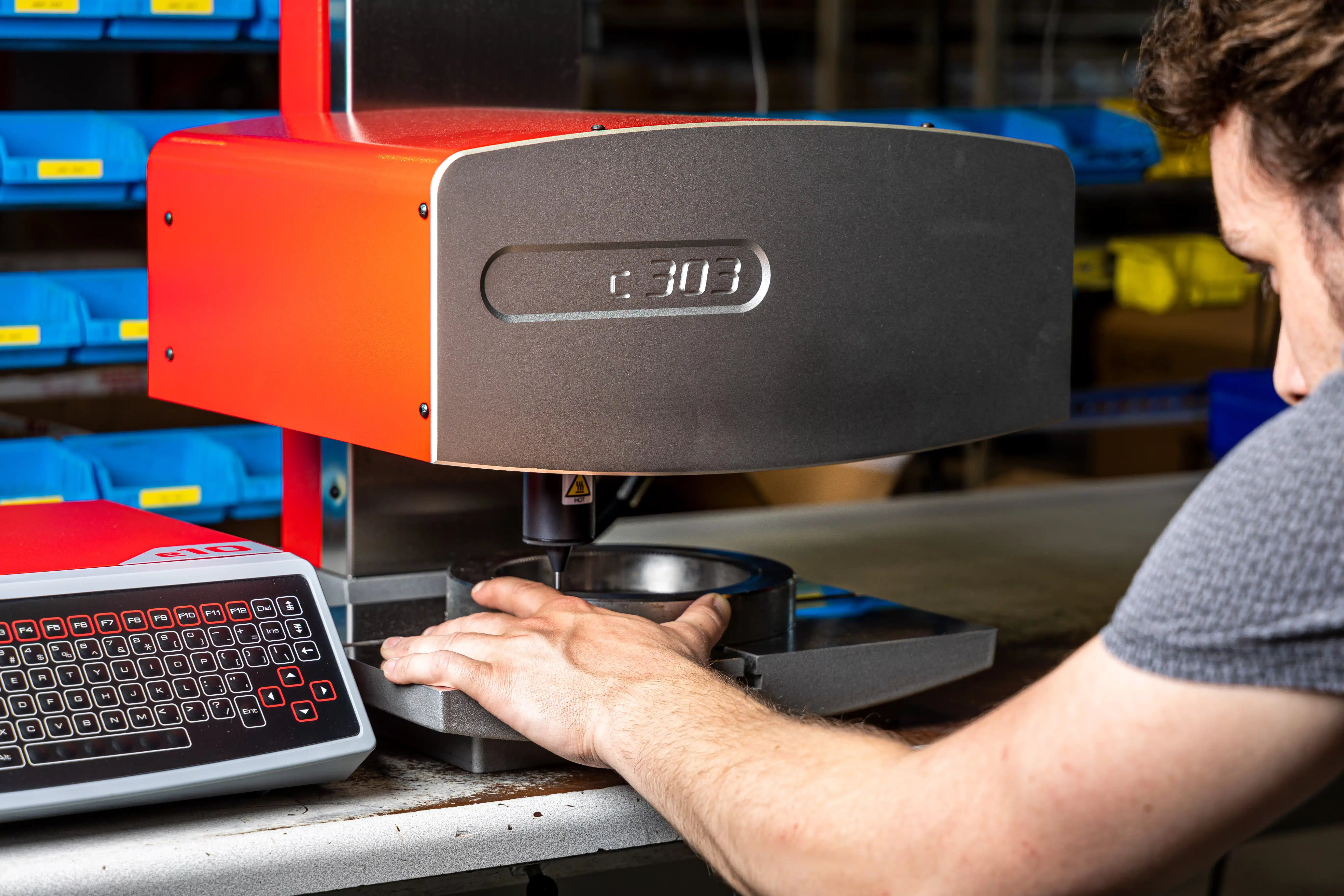 La máquina C303 también puede grabar textos alfanuméricos, así como logos, códigos 2D Datamatrix o códigos QR.