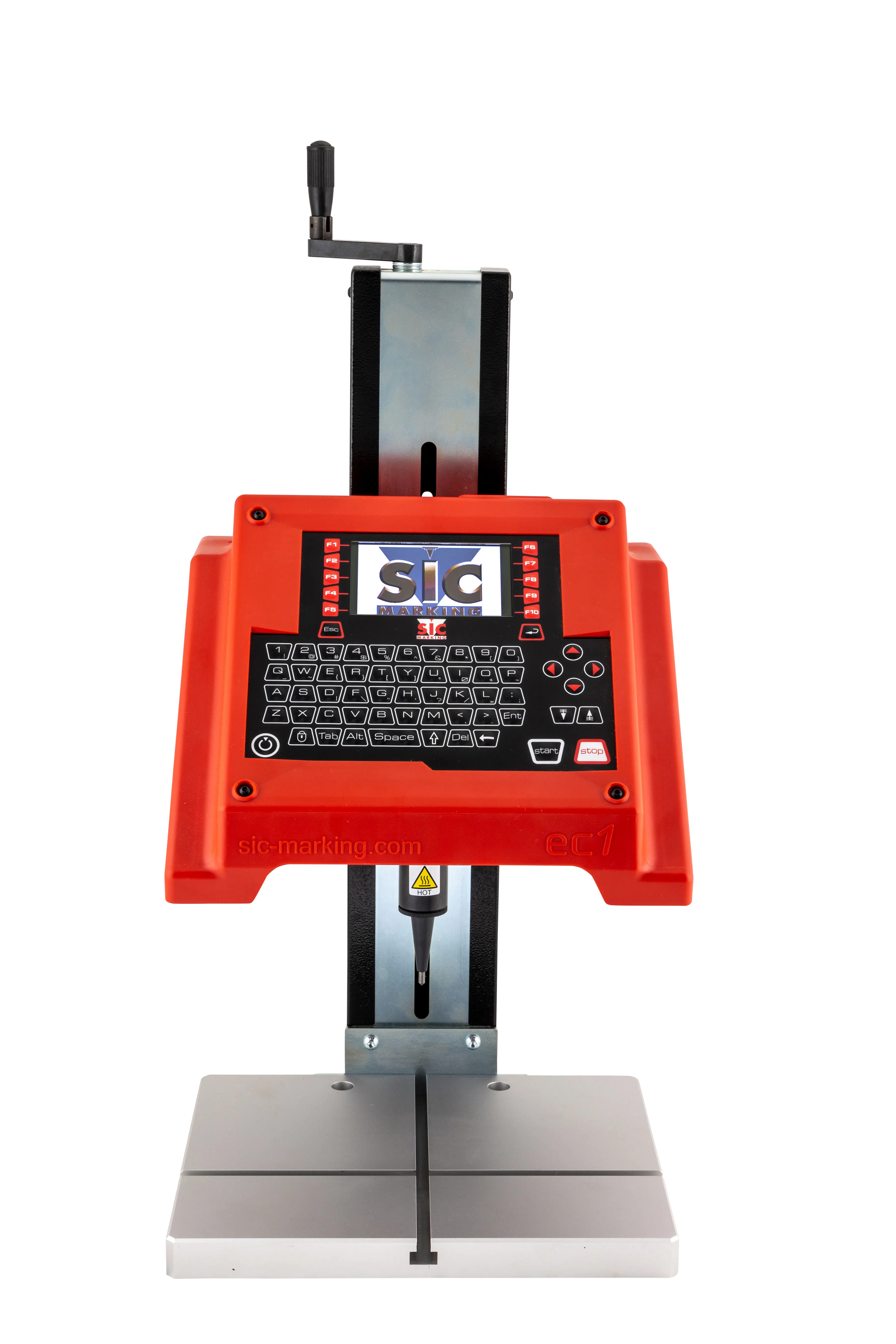 La EC1 presenta una GRAN VENTANA DE MARCADO (120 x 100 mm) y una carrera de columna de hasta 300 mm, lo que le permite marcar piezas de diversos tamaños y formas.