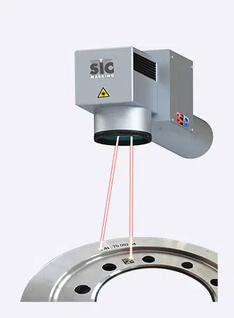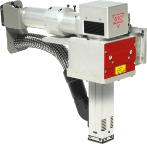 El cabezal de marcado láser I-104 EASY marca con precisión y contraste logos de alta definición, códigos alfanuméricos, pero también códigos 1D, 2D y Datamatrix.
