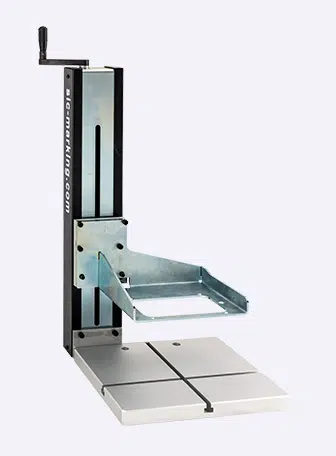Esta máquina de marcado nómade está adaptada a la IDENTIFICACIÓN Y TRAZABILIDAD DE PIEZAS PESADAS Y VOLUMINOSAS y puede marcar todo tipo de materiales.