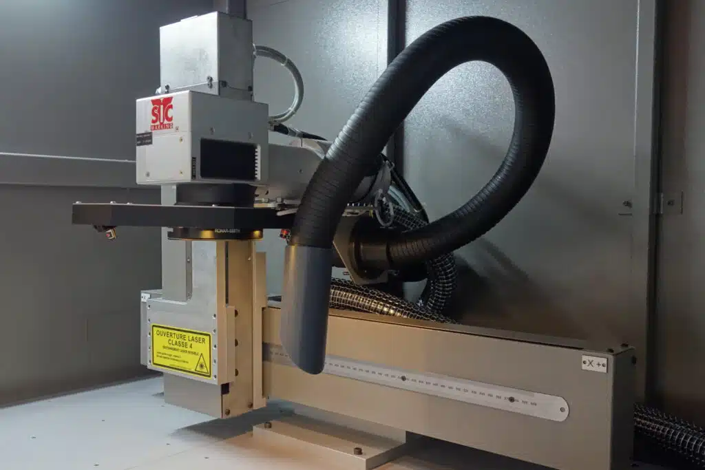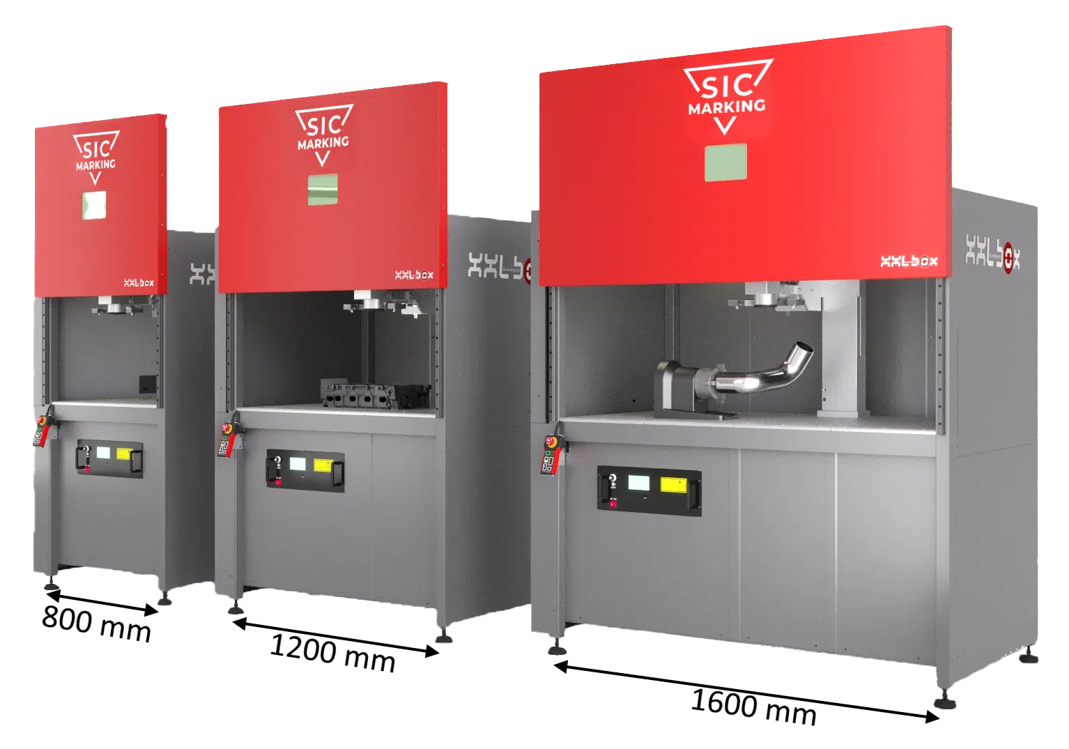 La XXL-BOX está disponible en 3 anchos: 800, 1200 o 1600 mm. Está equipada con un láser de fibra que va de 20W a 100W, para satisfacer las aplicaciones más exigentes.